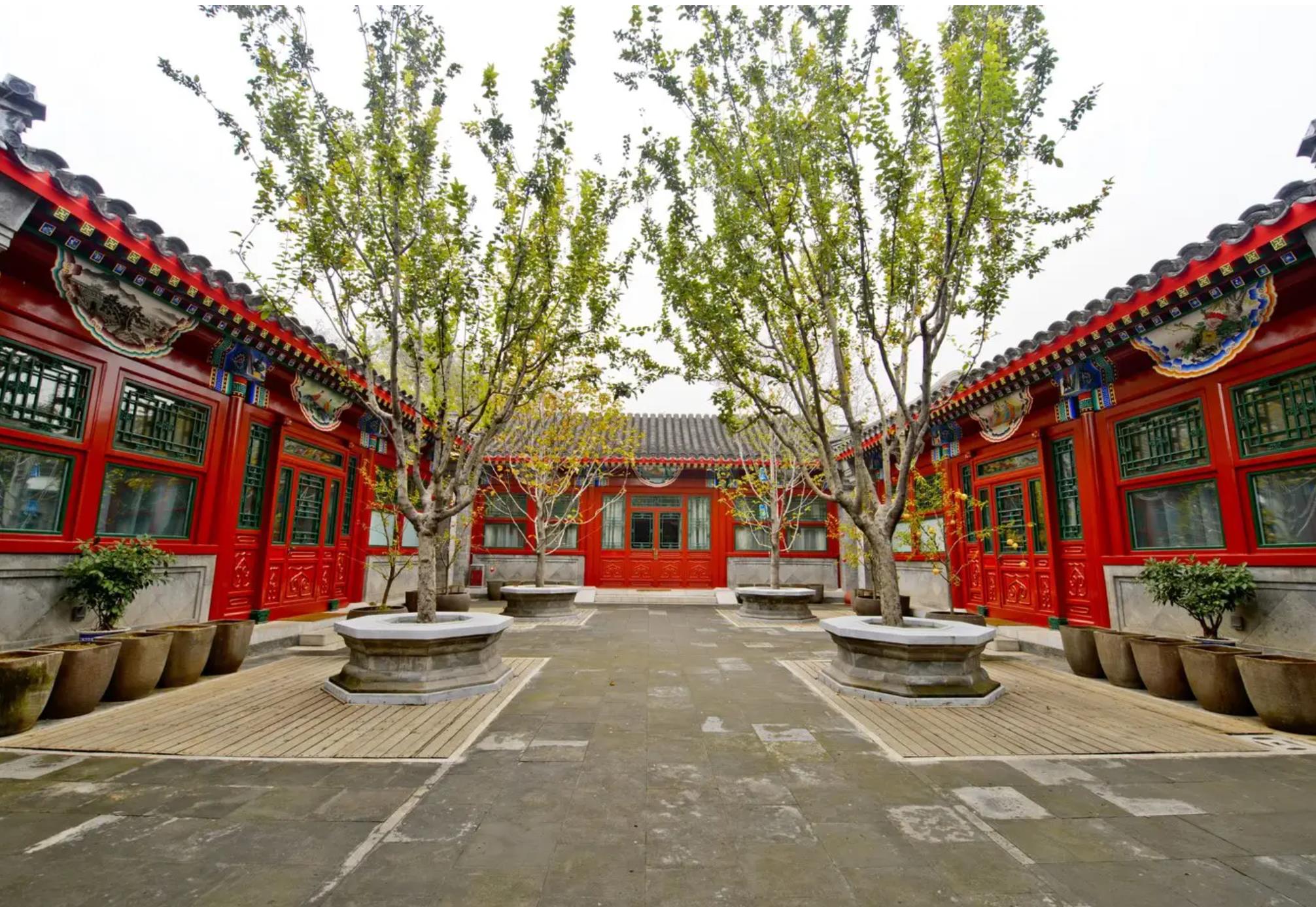 北京四合院中間是庭院,院落寬敞,庭院中蒔花置石,一般種植海棠樹,列石榴盆景,以大缸養金魚,寓意吉利,是十分理想的室外生活空間,好比一座露天的大起居室,把天地拉近人心,最為人們所鐘情。 四合院是封閉式的住宅,對外只有一個街門,關起門來自成天地,具有很強的私密性,非常適合獨家居住。院內,四面房子都向院落方向開門,一家人在里面和和美美,其樂融融。